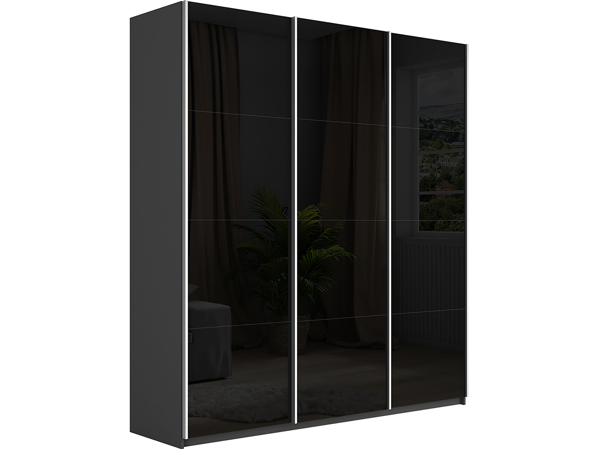 - Шкаф-купе Прайм 3-х дверный 1800 три стекла черные Серый Диамант