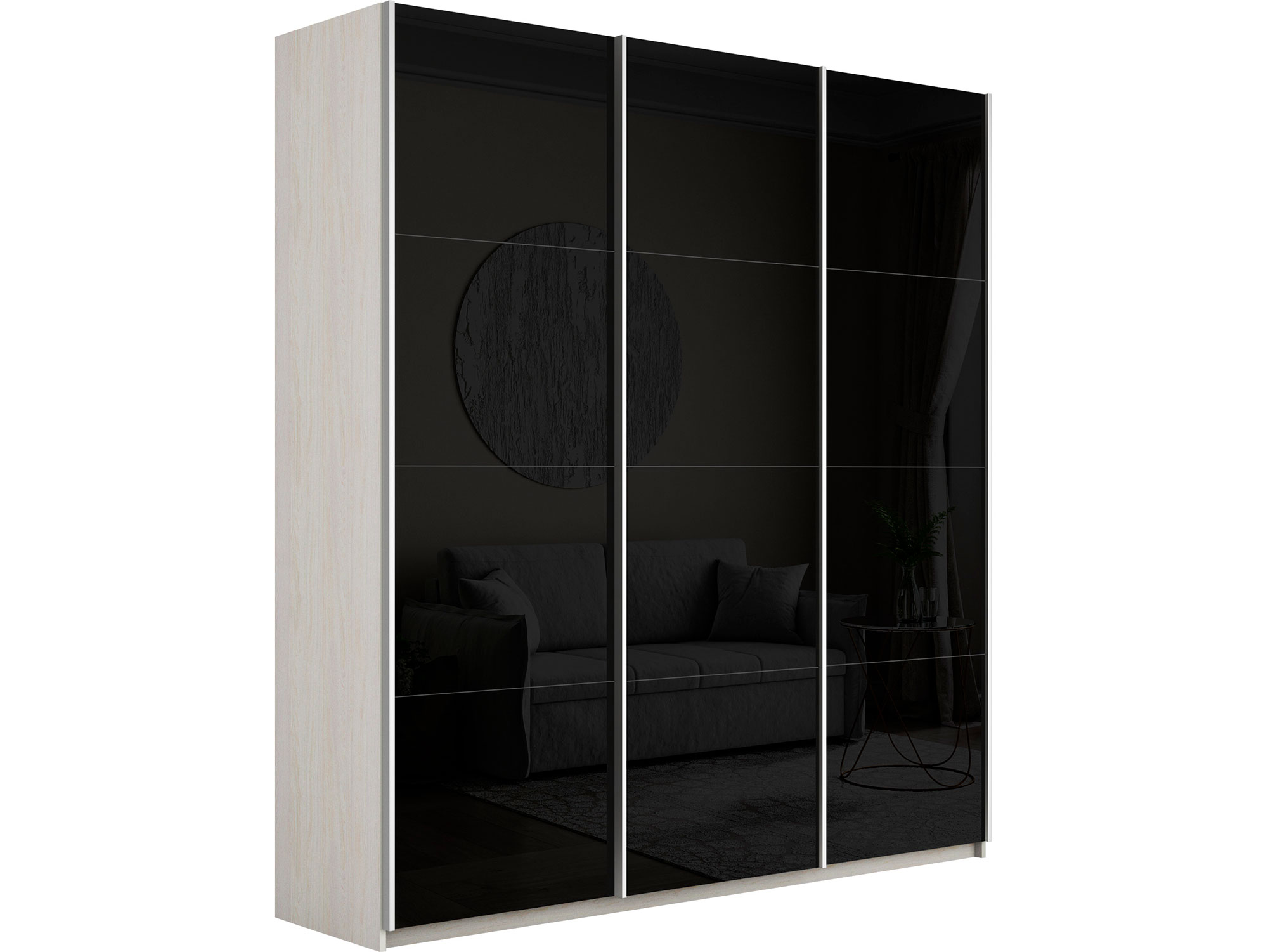 - Шкаф-купе Прайм 3-х дверный 1800 три стекла черные Ясень Анкор Светлый
