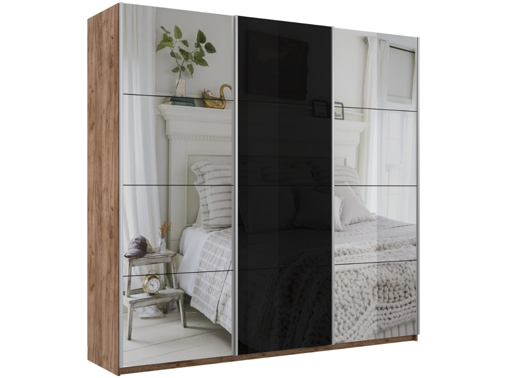 Шкаф-купе Прайм 3-х дверный 1800 Зеркало/Стекло Черное/Зеркало Крафт табачный