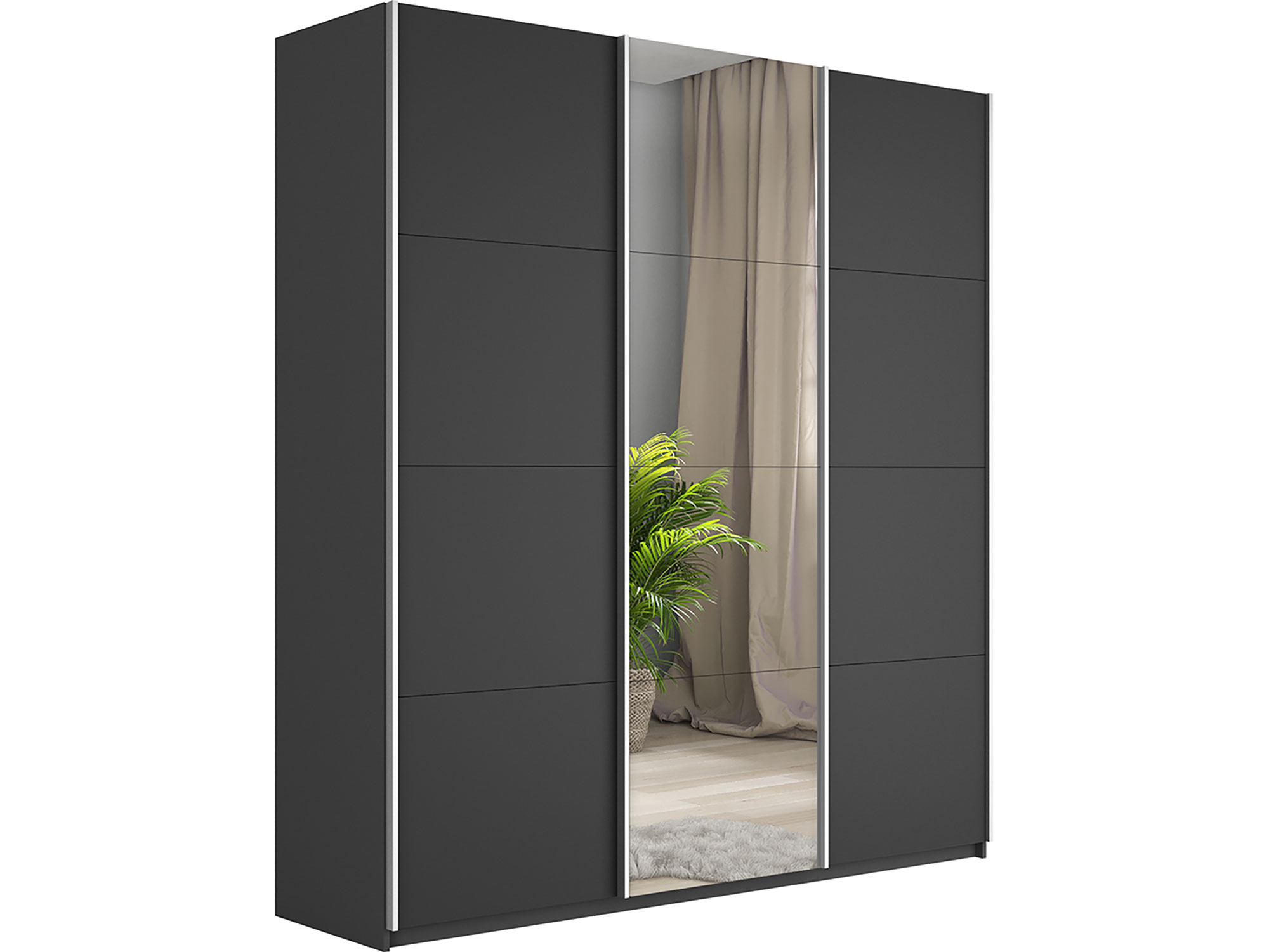 - Шкаф-купе Прайм 3-х дверный 2100 ДСП/зеркало/ДСП Серый Диамант