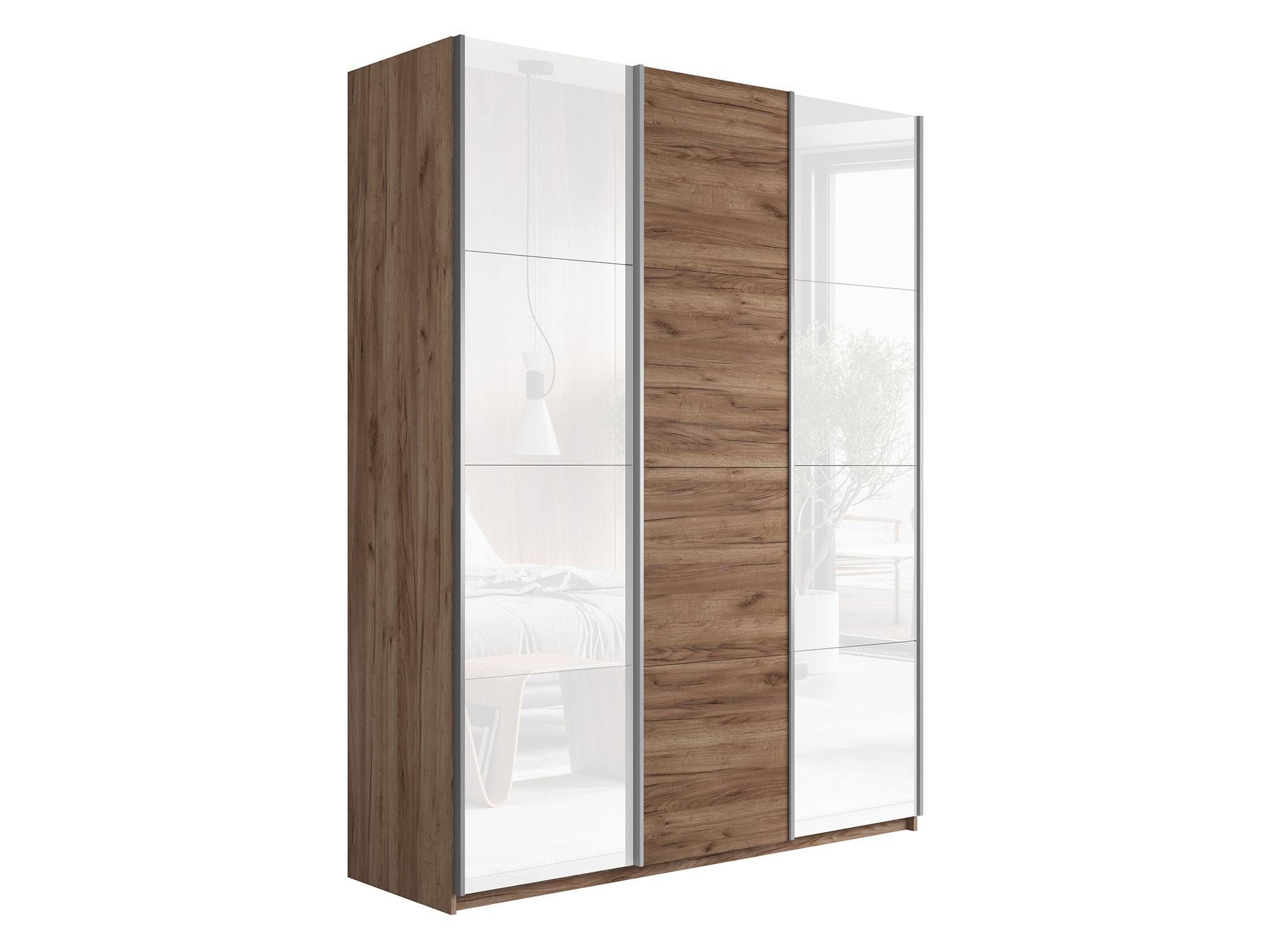 - Шкаф-купе Прайм 3-х дверный 2100 два Стекла Белые/ДСП Крафт табачный