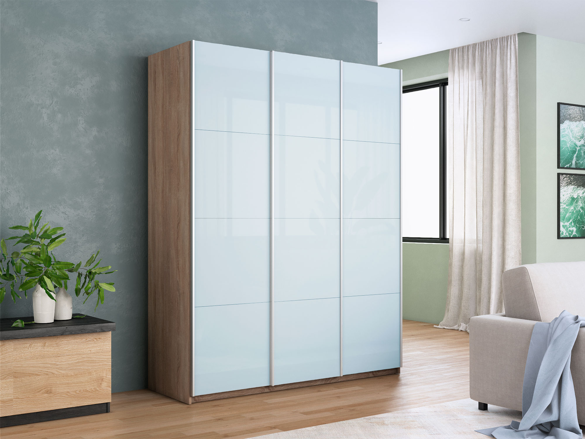 - Шкаф-купе Прайм 3-х дверный 2100 три стекла белые Сонома