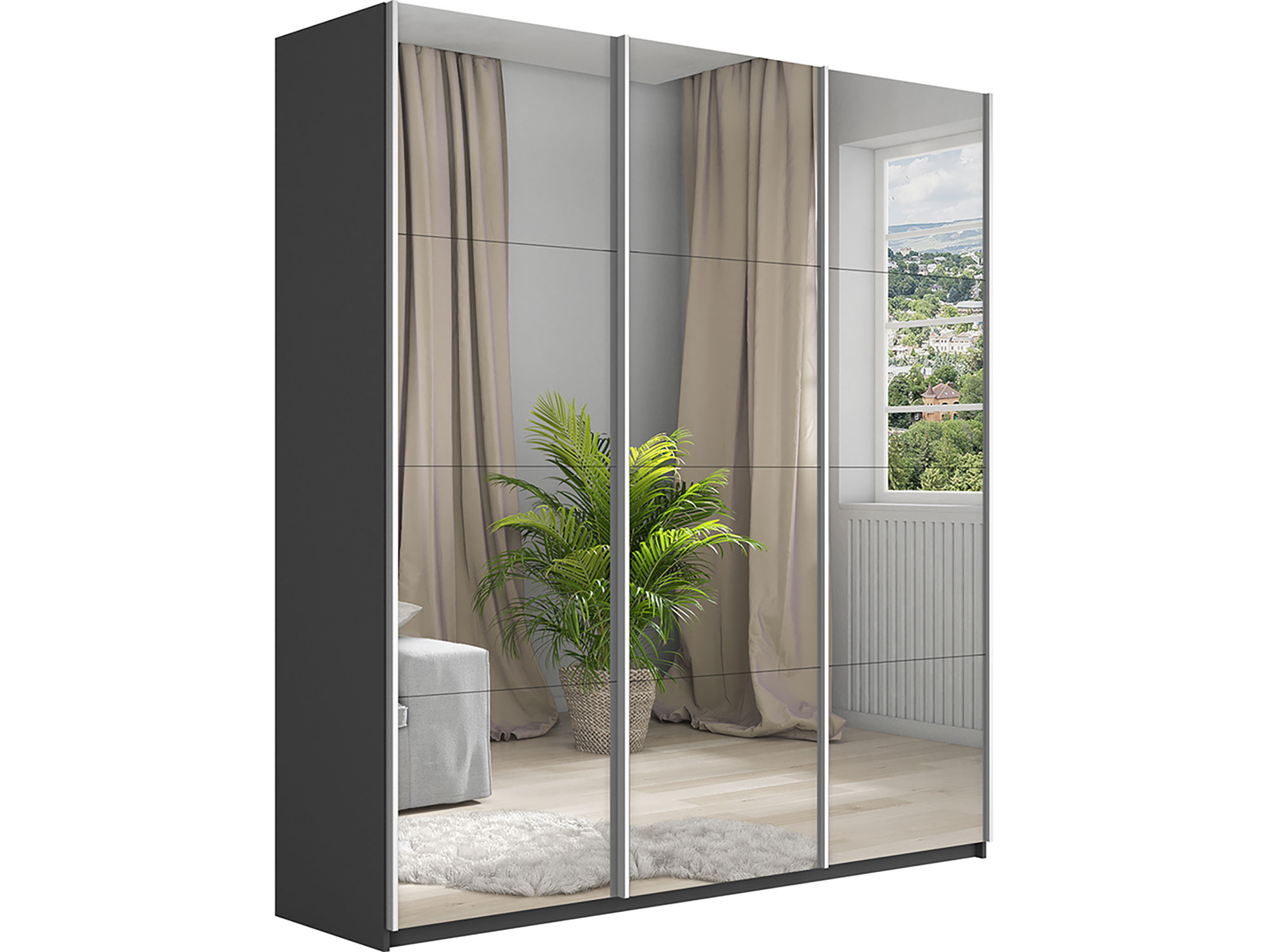- Шкаф-купе Прайм 3-х дверный 2100 три зеркала Серый Диамант
