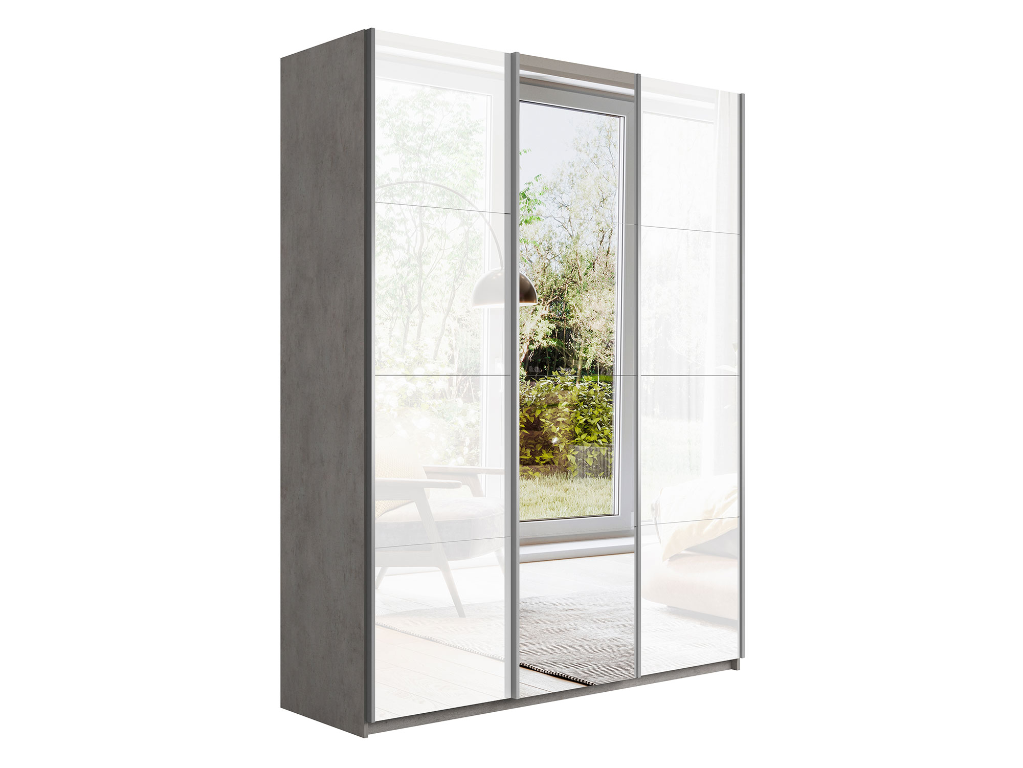 Шкаф-купе Прайм Широкий 3-х дверный два белых стекла/зеркало Бетон