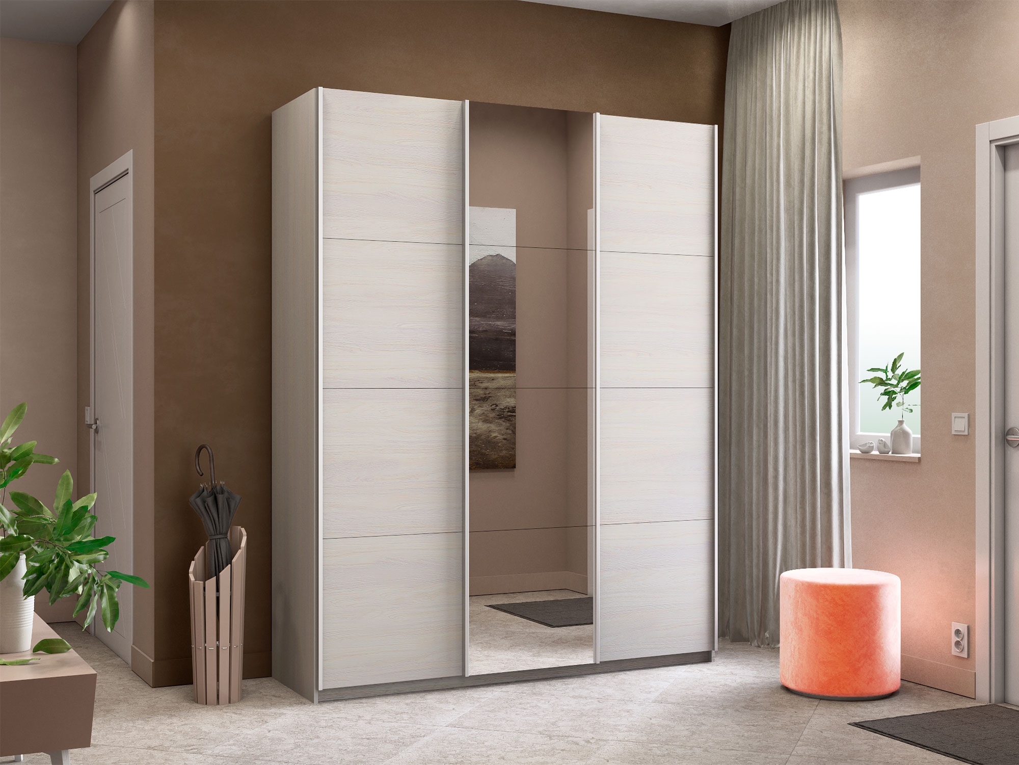 - Шкаф-купе Прайм Широкий 3-х дверный два ДСП/Зеркало Ясень Анкор Светлый