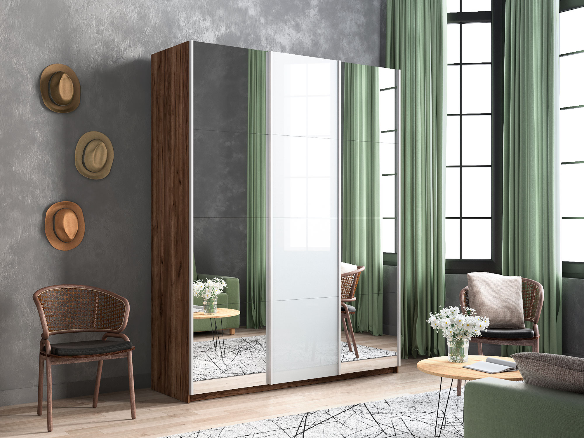 Материал фасада: зеркало/стекло/зеркало