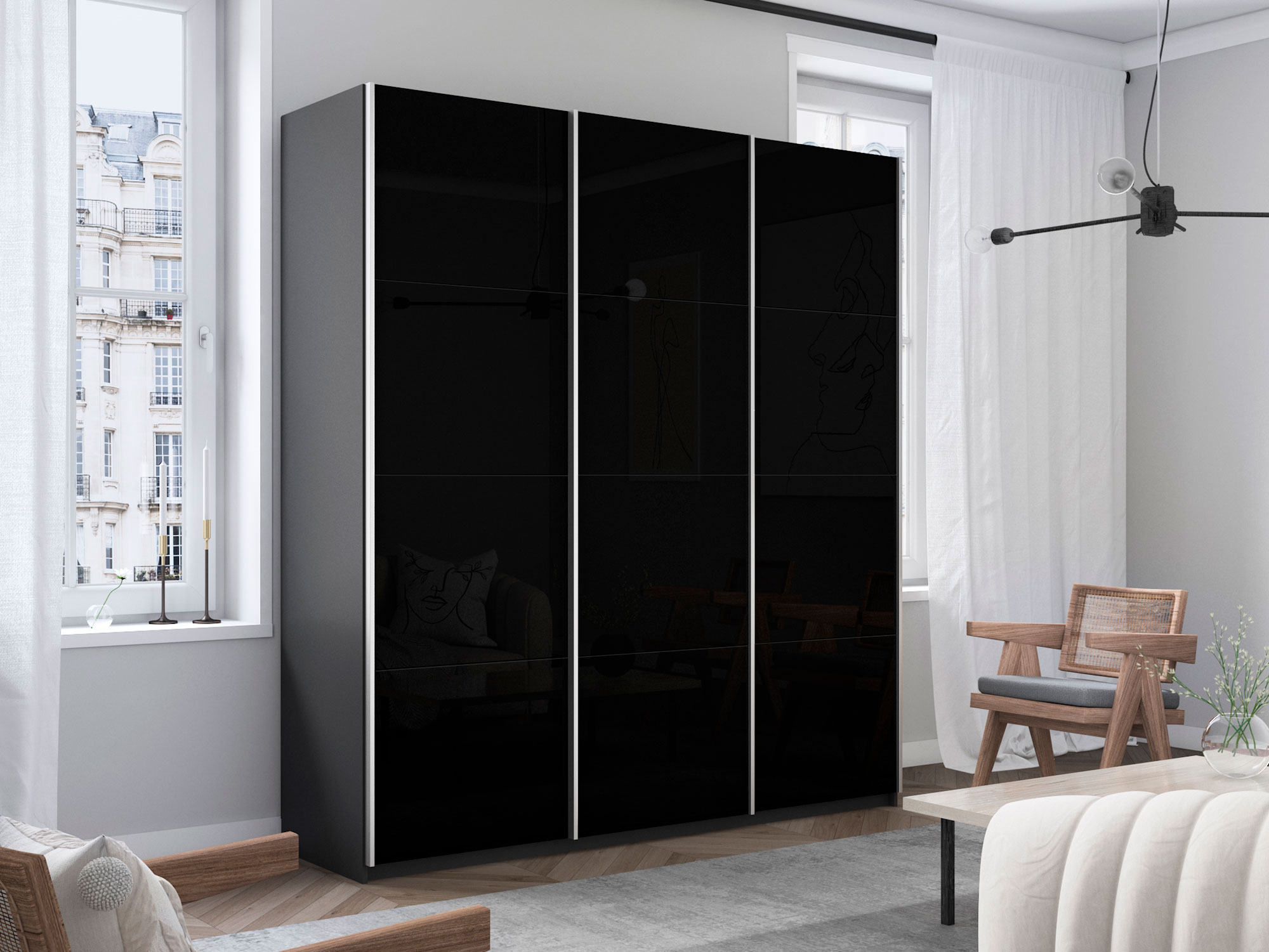 Шкаф-купе Прайм Широкий 3-х дверный три черных стекла Серый Диамант