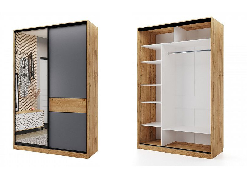Шкаф-купе SLIM 2-хдверный BS15-6.ZD с зеркалом дуб вотан-черный муар