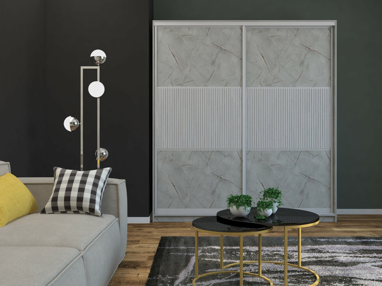 Шкаф-купе Юлия 2000 широкая рельефная вставка МДФ Каспий светлый
