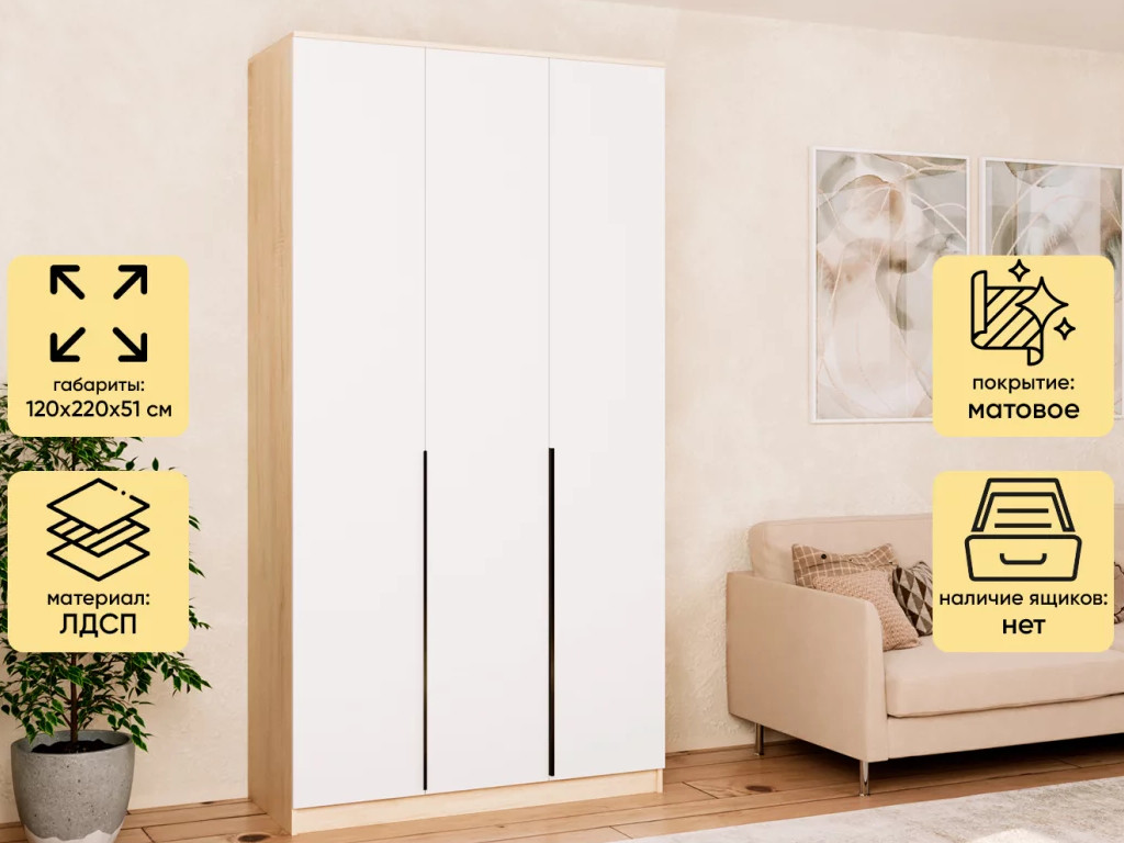 Шкаф Монблан New распашной 1200 3-х дверный Дуб сонома-Белый