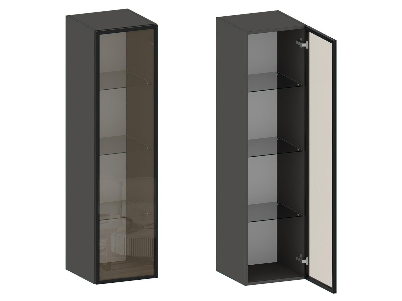 - Фасады из МДФ с оригинальной фрезеровкой покрыты суперматовой пленкой с эффектом Soft Touch в цветах Графит и Milk.
