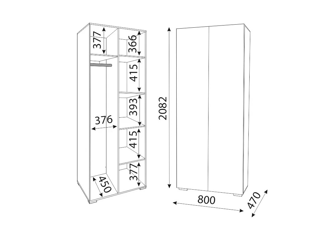 Шкаф Осло 2 двери штанга/полки М03 ручка торцевая Цемент светлый