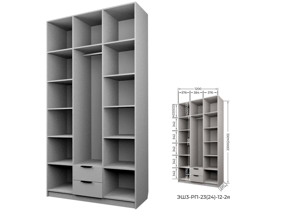 Шкаф с 2 ящиками Экон ЭШ3-РП-23-12-2я три зеркала