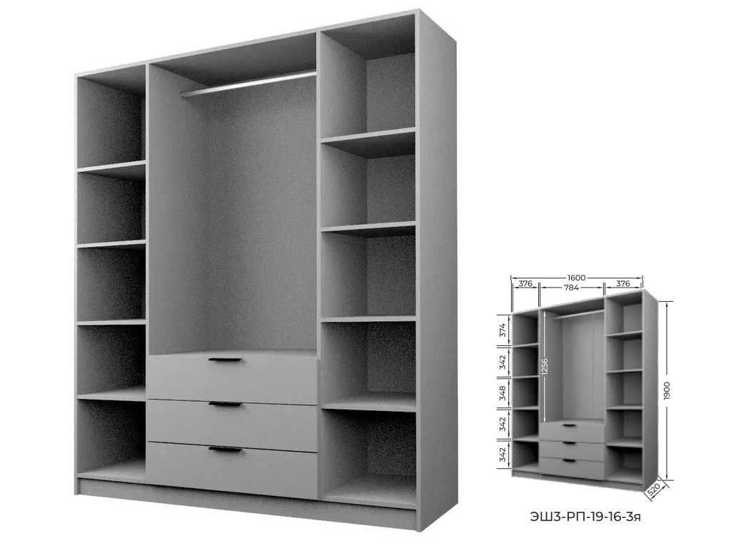 Комплект: ЭШ3-РП-19-16-3я, Шкаф с 3 ящиками + два ЗС-19-3я,Зеркало для шкафов ЭШ 1900 мм + ЗС-19, Зеркало для шкафов ЭШ 1900 мм