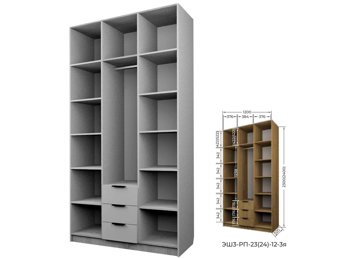 Комплект: ЭШ3-РП-24-12-3я, Шкаф с 3 ящиками + ЗС-24-3я,Зеркало для шкафов ЭШ 2400 мм