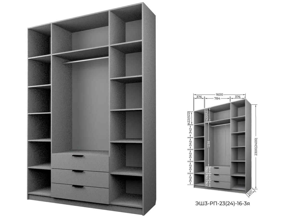Шкаф с 3 ящиками Экон ЭШ3-РП-24-16-3я