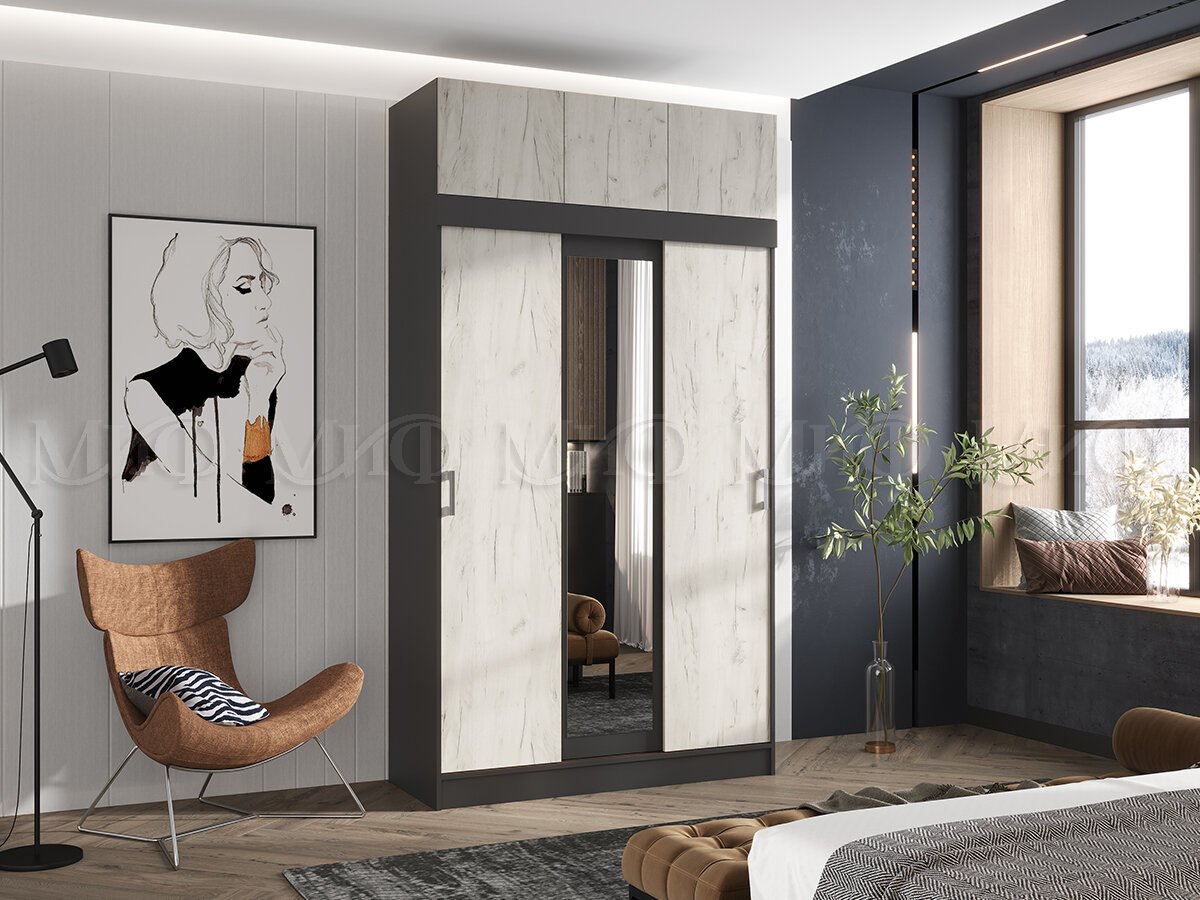 - Шкаф с антресолью Бася/Роджина Дуб крафт белый/Графит