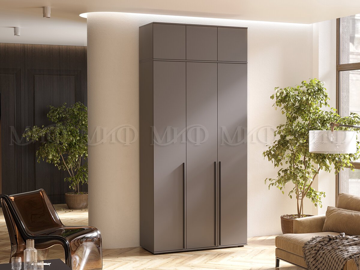 - Шкаф трехстворчатый Норд 1200 с антресолью графит МГ