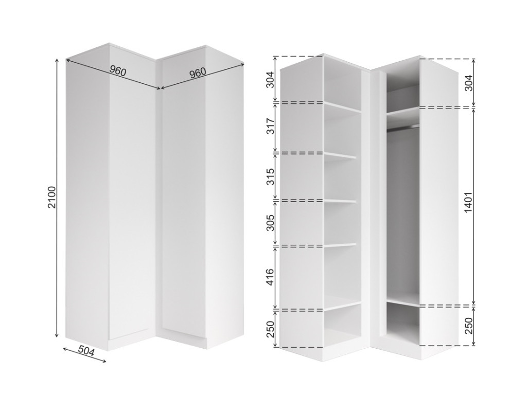 Размер: ш 960/960*г 504*в 2100 мм