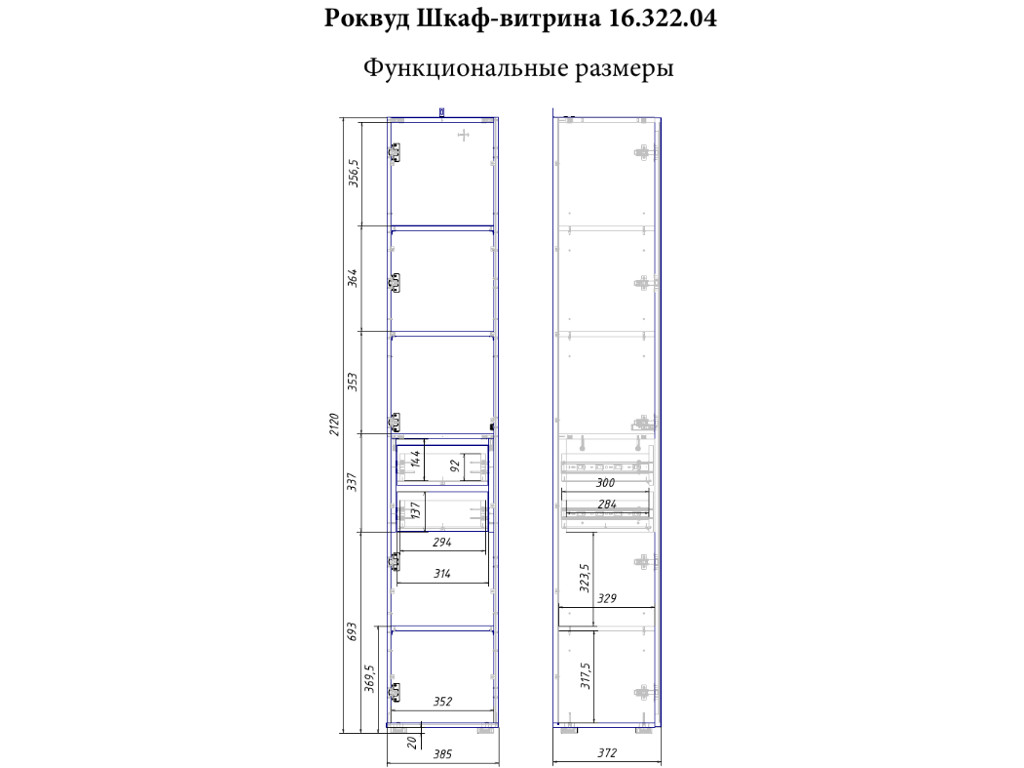 Размер ШхГхВ: 385 x 372, В 2120 мм