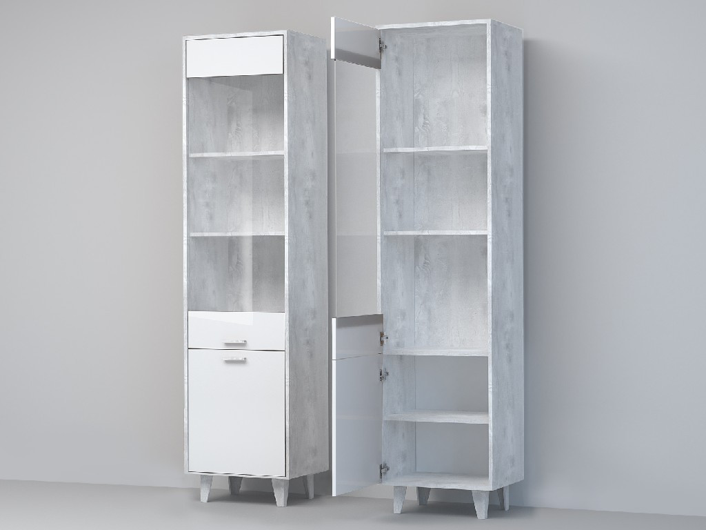 - Пенал Эго ПС-1 бетон светлый/белый глянец на ножках