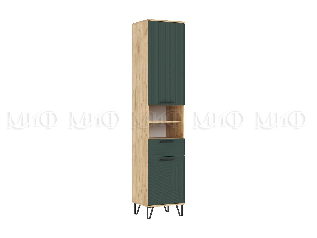 Пенал открытый в прихожую Флэш Браш Мени Грин, Дуб Крафт