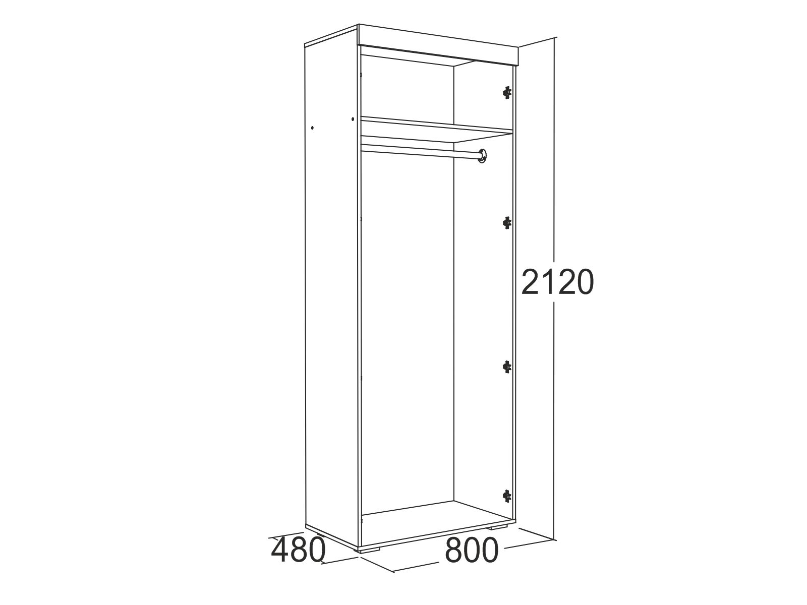 Размер (ВхШхГ): 2120х800х480 мм