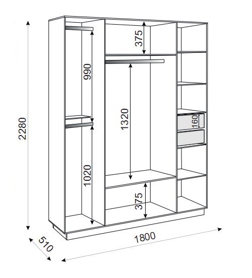Размер (Ш*Г*В) 1800*510*2280 мм