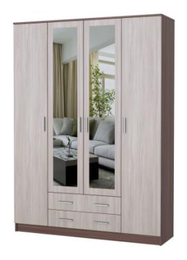 - Шкаф Квадро 4х-створчатый с 2мя ящиками с 2мя зеркалами