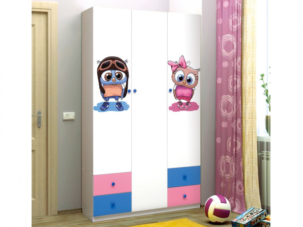 Шкаф трехдверный с ящиками и фотопечатью Совята 3.1
