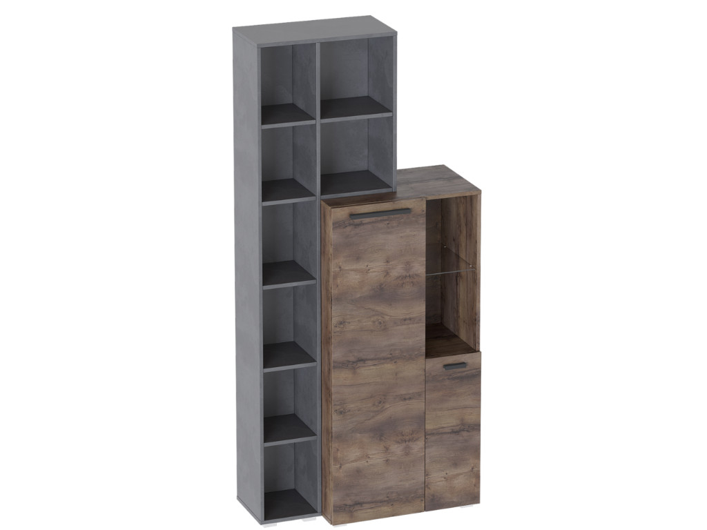 Стеллаж разработан как приставной элемент угловой формы и может использоваться только совместно с Тумбой 2 дв из набора