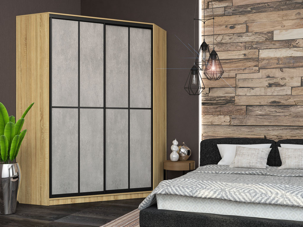 - Угловой шкаф-купе Лофт фасад МДФ бетон +