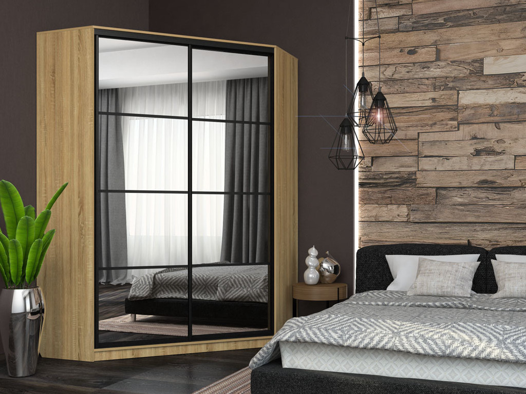 - Угловой шкаф-купе Лофт фасад зеркало 3г