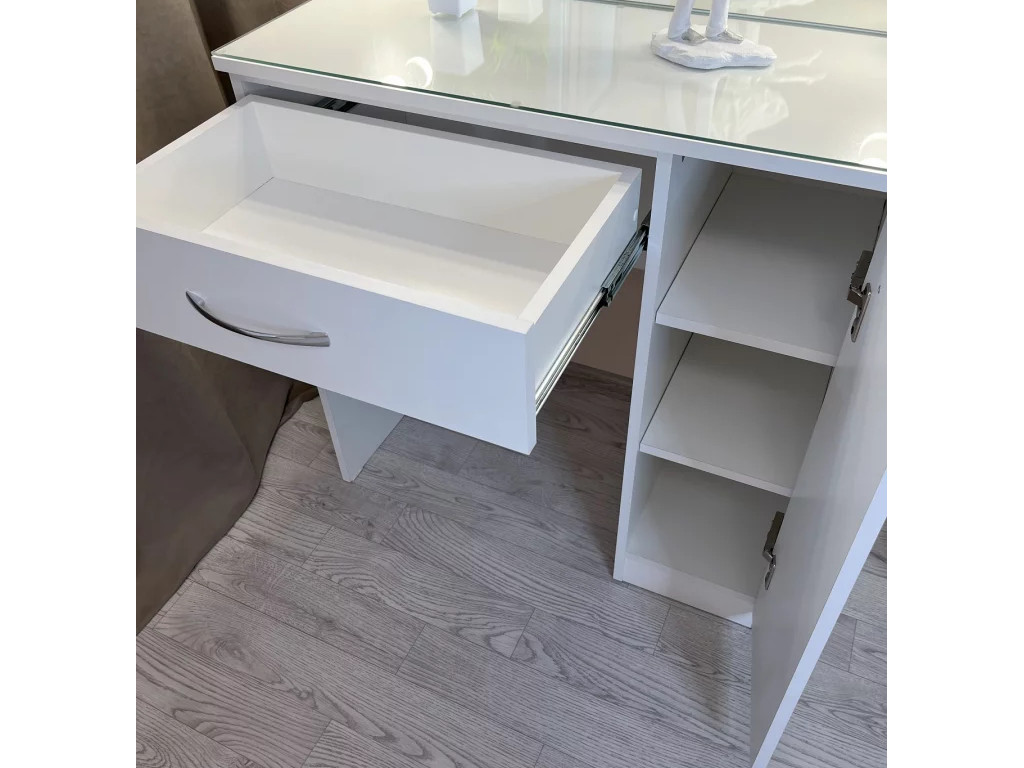 - Стол с 1 вместительным полновыкатным ящиком и тумбой с дверцей.